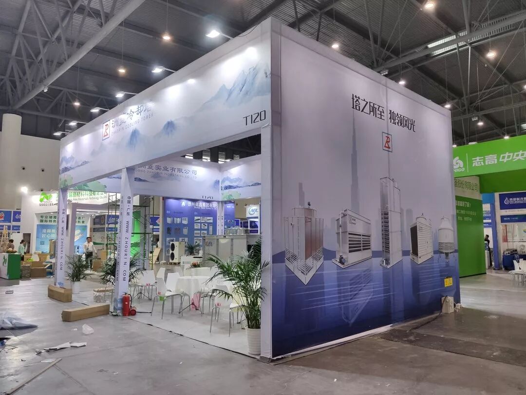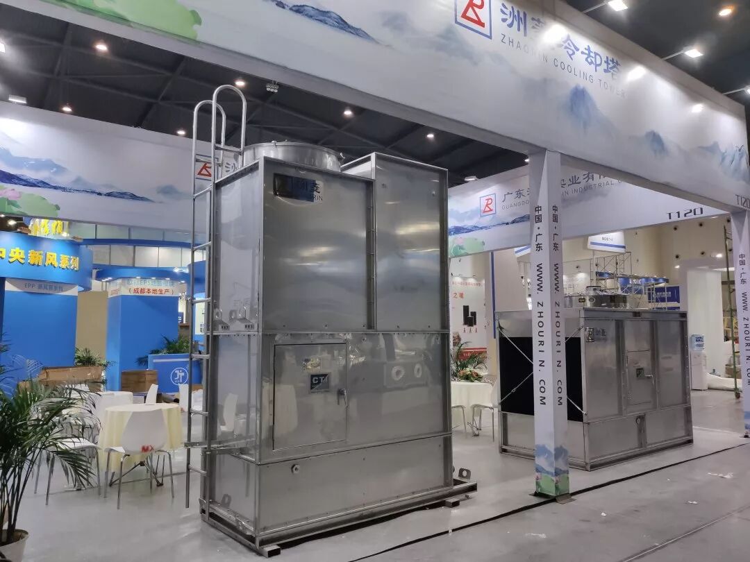 展会期间,举办方共开辟出1号和2号两大展馆区域,供与会几百家参展商同时展示产品。作为首次报名参展成都制冷展的广东洲菱实业有限公司,我们在会上也展出了两款主打产品——SRNG不锈钢横流方塔和SHC不锈钢混流式闭式塔。