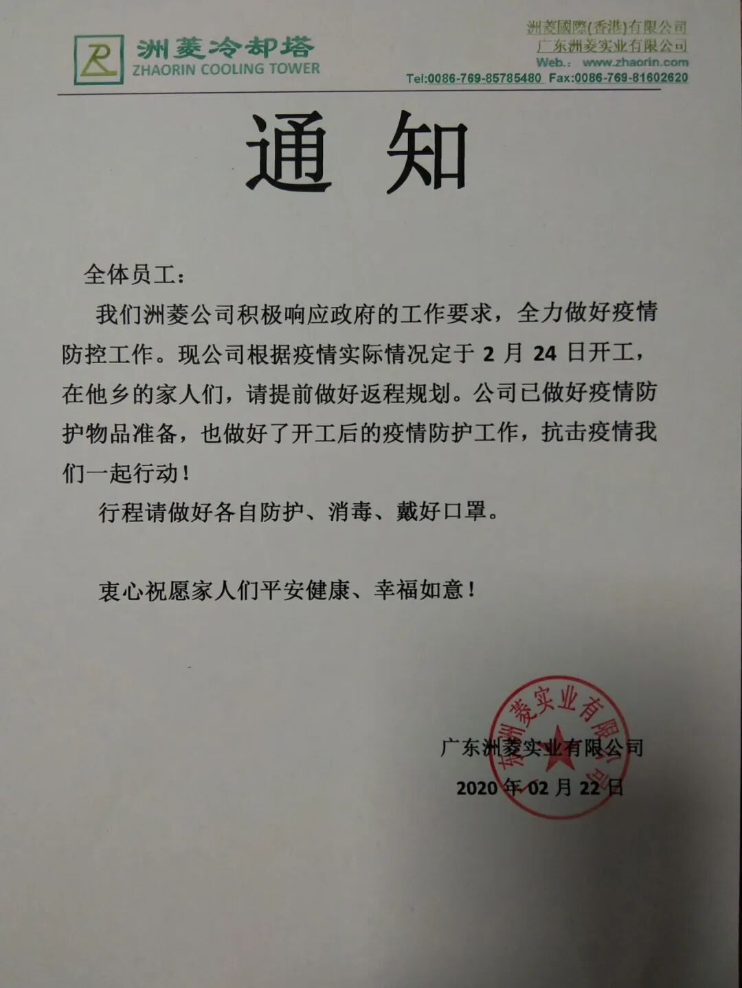 但作为中国大家庭中的一员,我们要做的就是做好自己,服从安排,响应国家号召,延缓开工时间,做好防疫措施。我司原定于2月2日开工,鉴于疫情还在攻坚之期,决定适当延长假期。目前我们在所有前期防疫预防工作完成情况下,经当地政府部门批准,已于2020年2月24日顺利开工。
